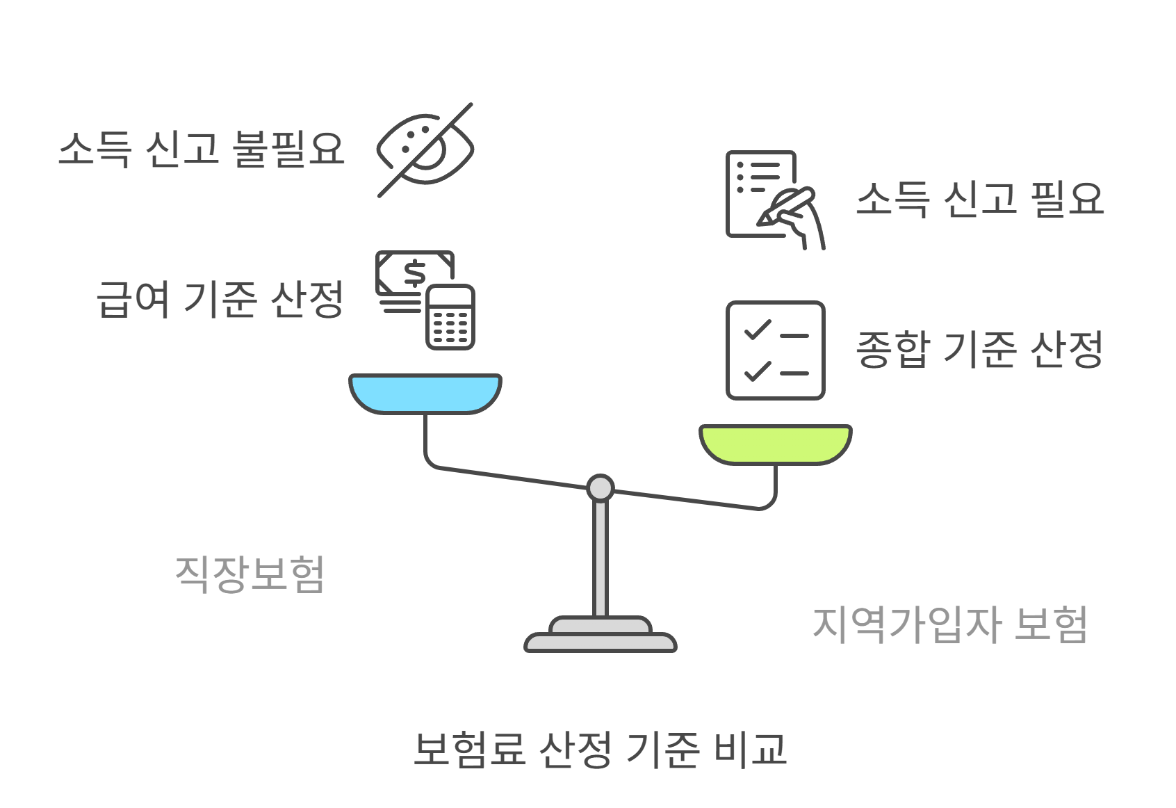 직장보험은 급여 기준으로 산정되지만, 지역가입자의 건강보험료는 소득·재산·자동차 등 종합 기준으로 매겨집니다.