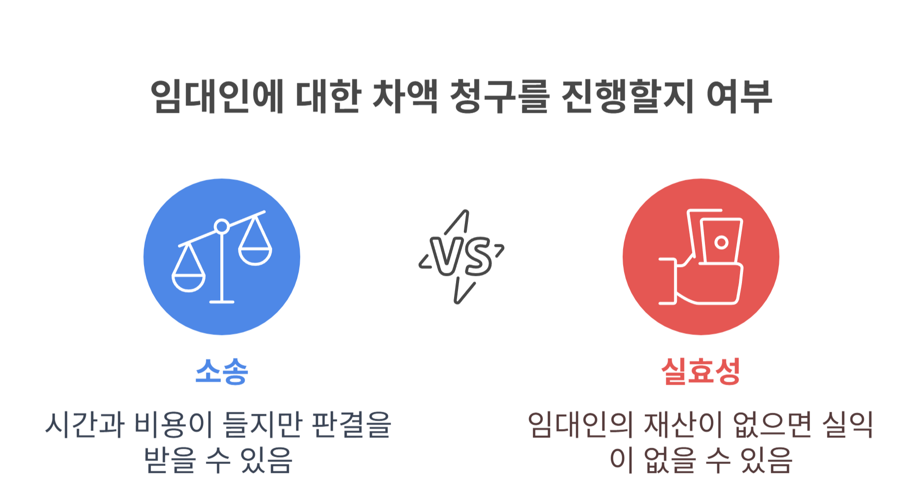 다만 소송은 시간과 비용이 들며, 무엇보다 임대인의 재산이 없다면 판결을 받아도 실익이 없을 수 있어요.