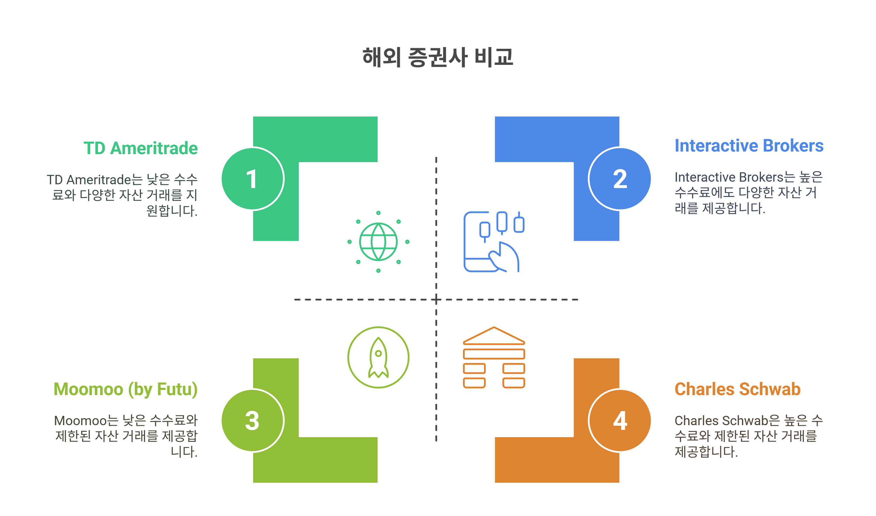 한국 거주자가 직접 계좌를 개설할 수 있는 대표적인 해외 증권사들을 소개할게요.