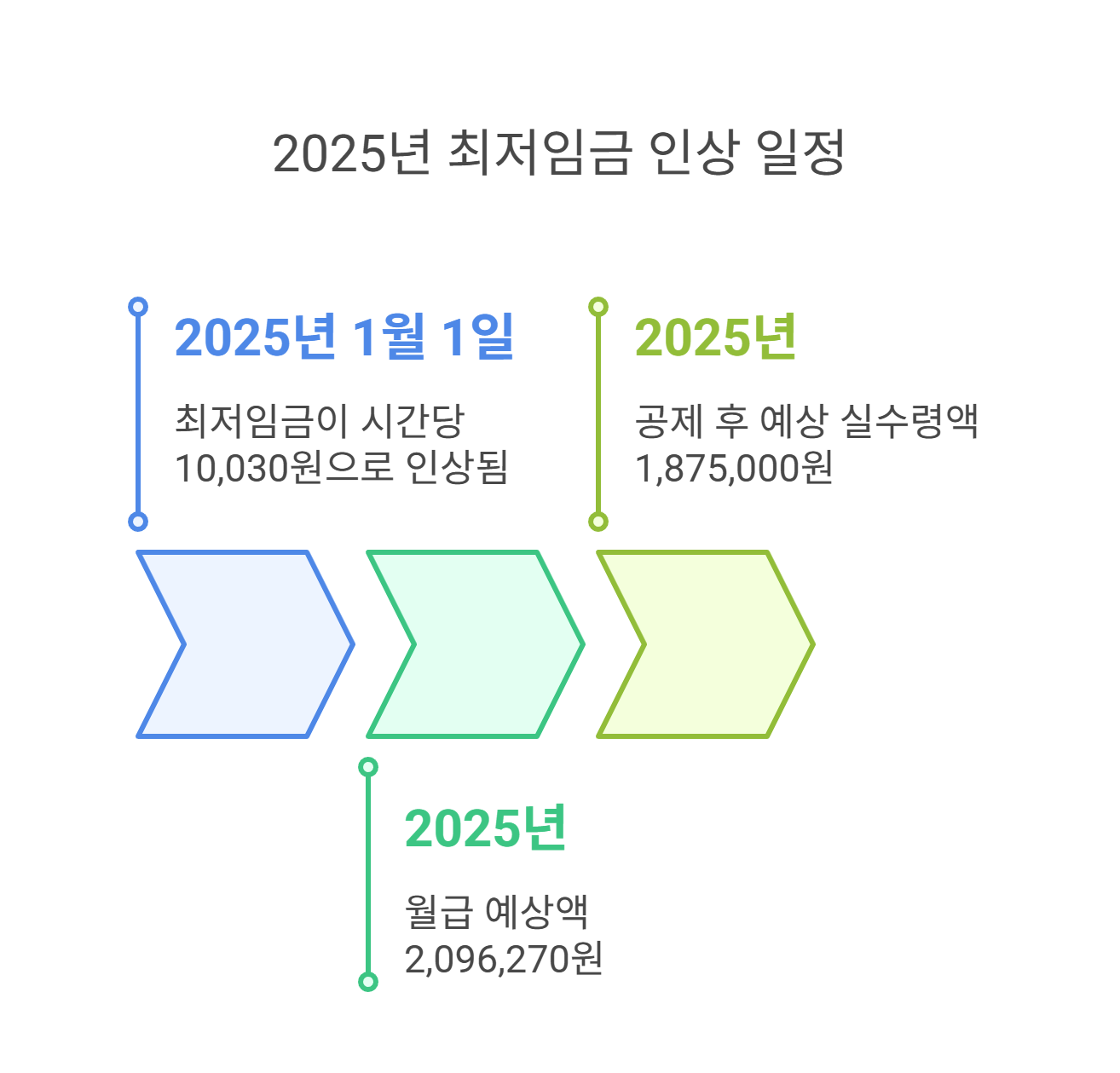 이는 2024년보다 약 1.7% 인상된 금액으로, 월 209시간 기준으로 환산하면 월급 약 2,096,270원이 됩니다.