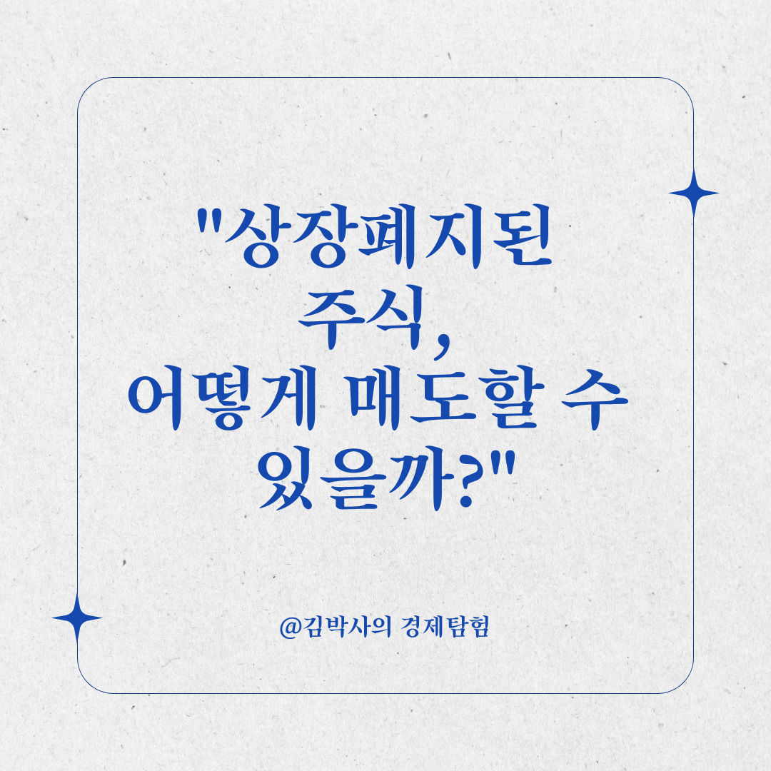 ✅ 상장폐지된 주식은 일반적인 주식시장에서는 거래가 불가능하므로, 거래 방법을 정확히 숙지해야 합니다.