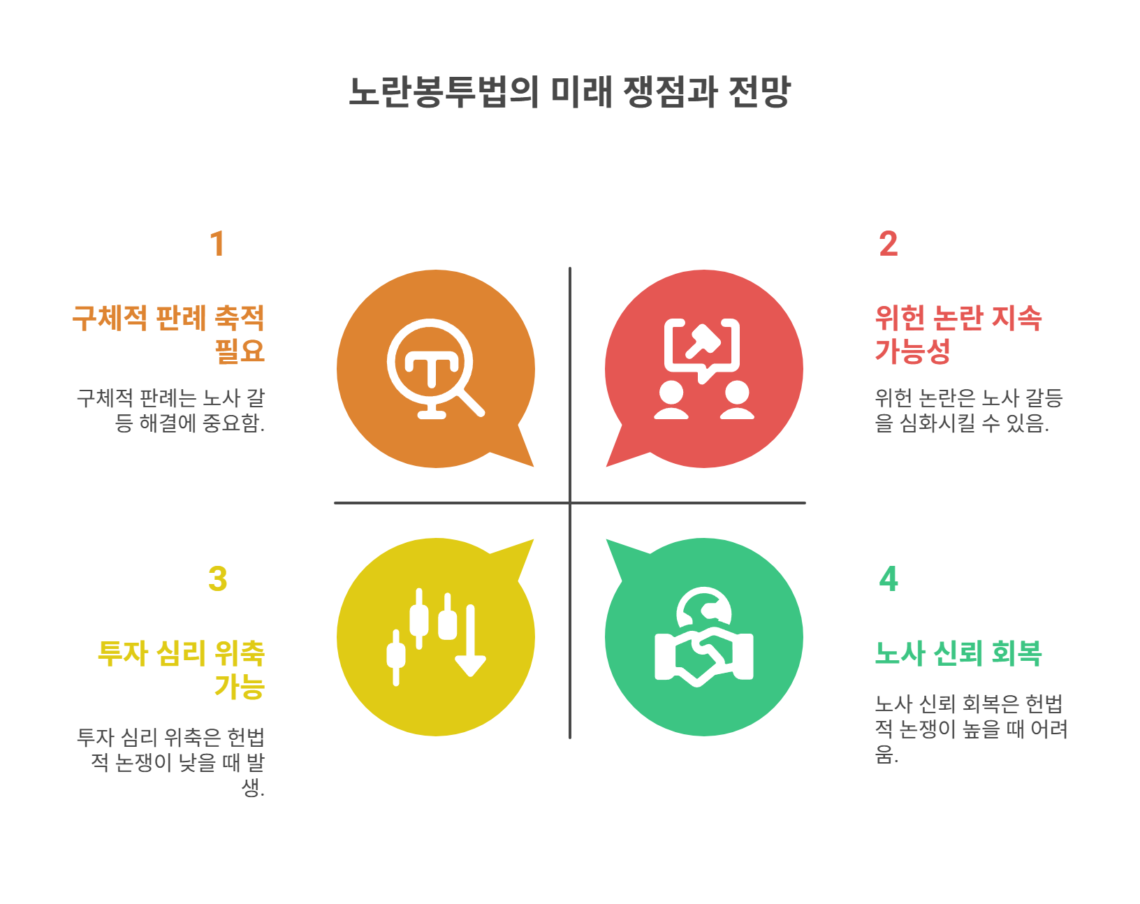 앞으로의 쟁점은 노란봉투법이 헌법에 부합하는 방식으로 운영될 수 있을지, 그리고 노사 간 신뢰 회복에 기여할 수 있을지가 될 거예요.