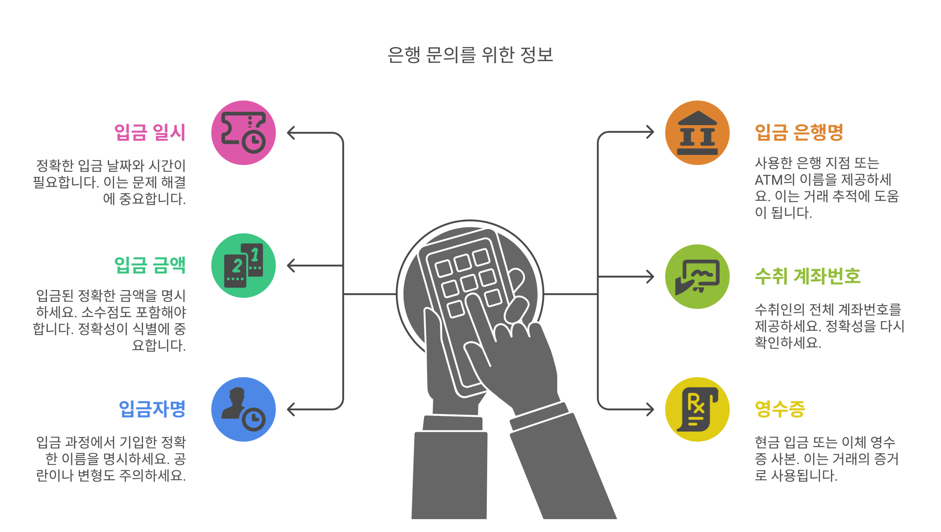 무통장입금 후 입금이 안 되었다면, 은행에 연락하기 전 다음과 같은 정보를 준비해두면 훨씬 빠르게 처리할 수 있어요.