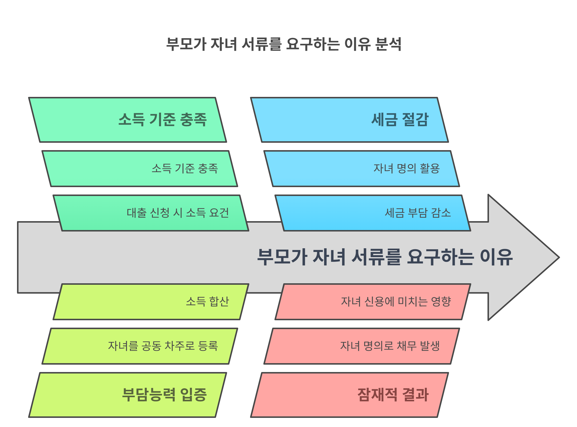 | 부담능력 입증 | 자녀를 공동 차주로 등록하거나 소득을 합산해 대출 가능 금액을 늘림 |
