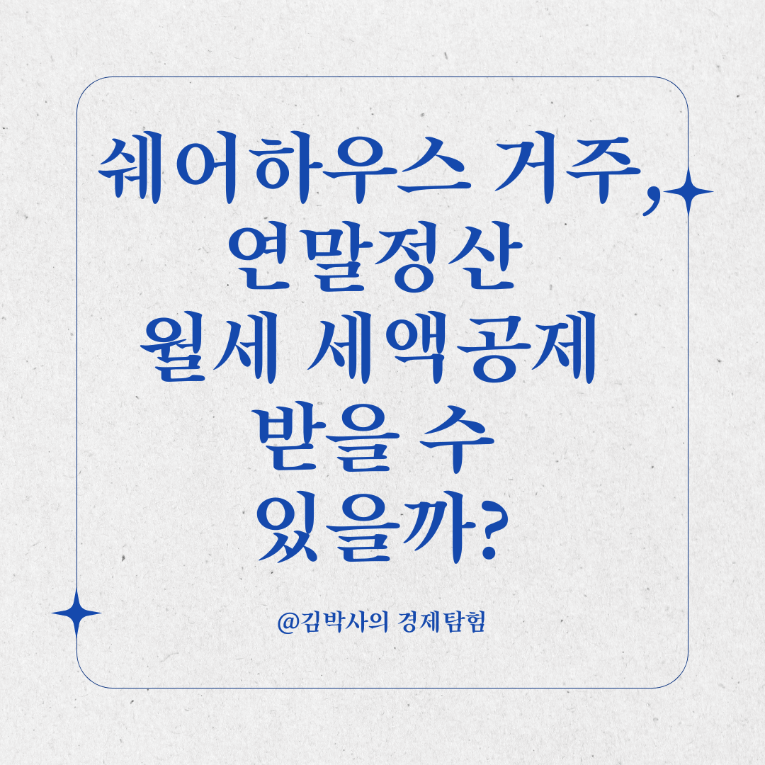 오늘은 쉐어하우스 거주 시 월세 세액공제 가능 여부에 대해 알아봤어요.