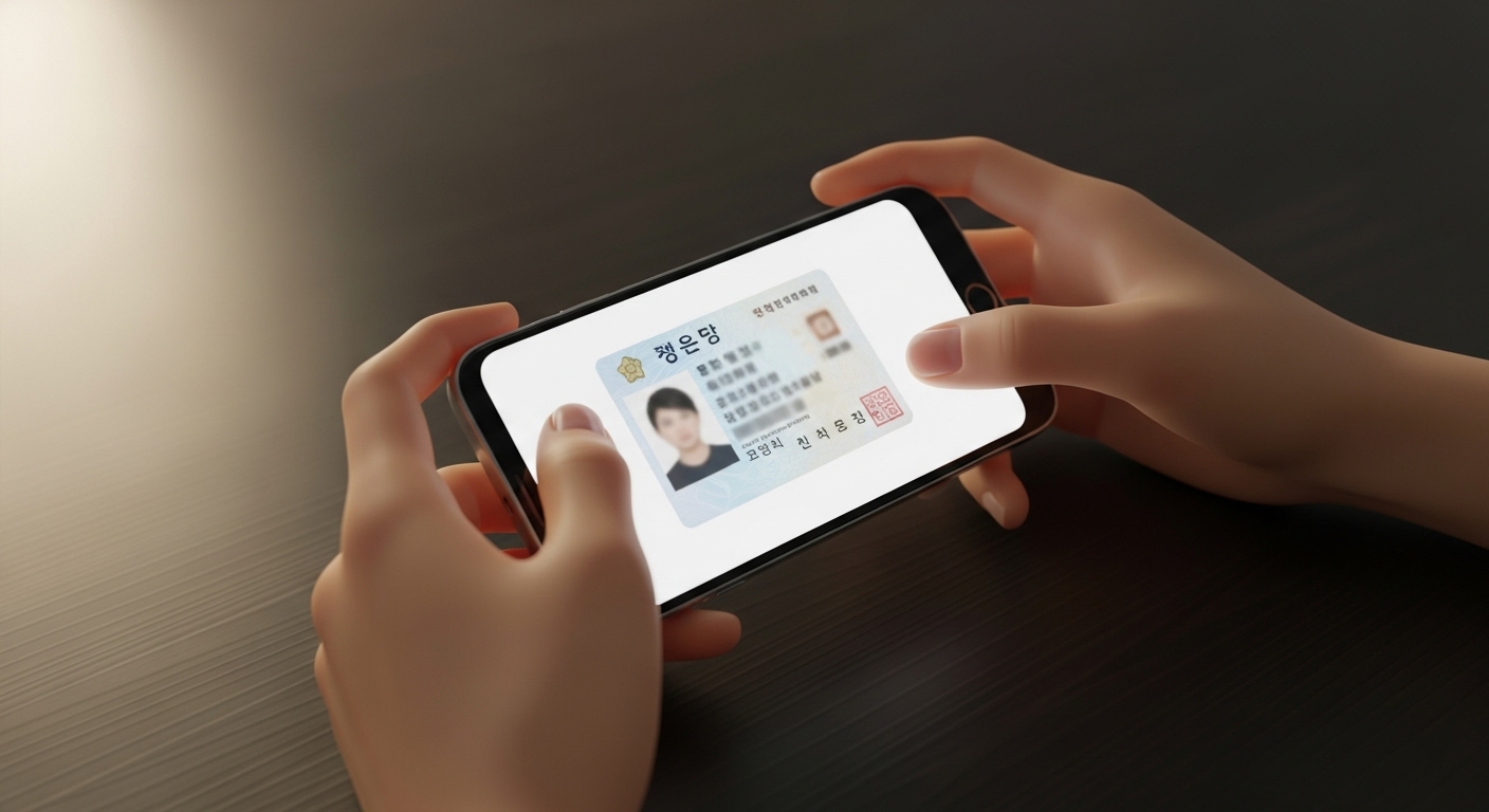 행정안전부의 '모바일 신분증 앱'이나 통신사의 'PASS 앱', 또는 '삼성월렛' 등에 저장된 신분증입니다. 이를 이용하면 카메라 촬영 없이 비밀번호나 생체인증만으로 신분 확인이 끝납니다.