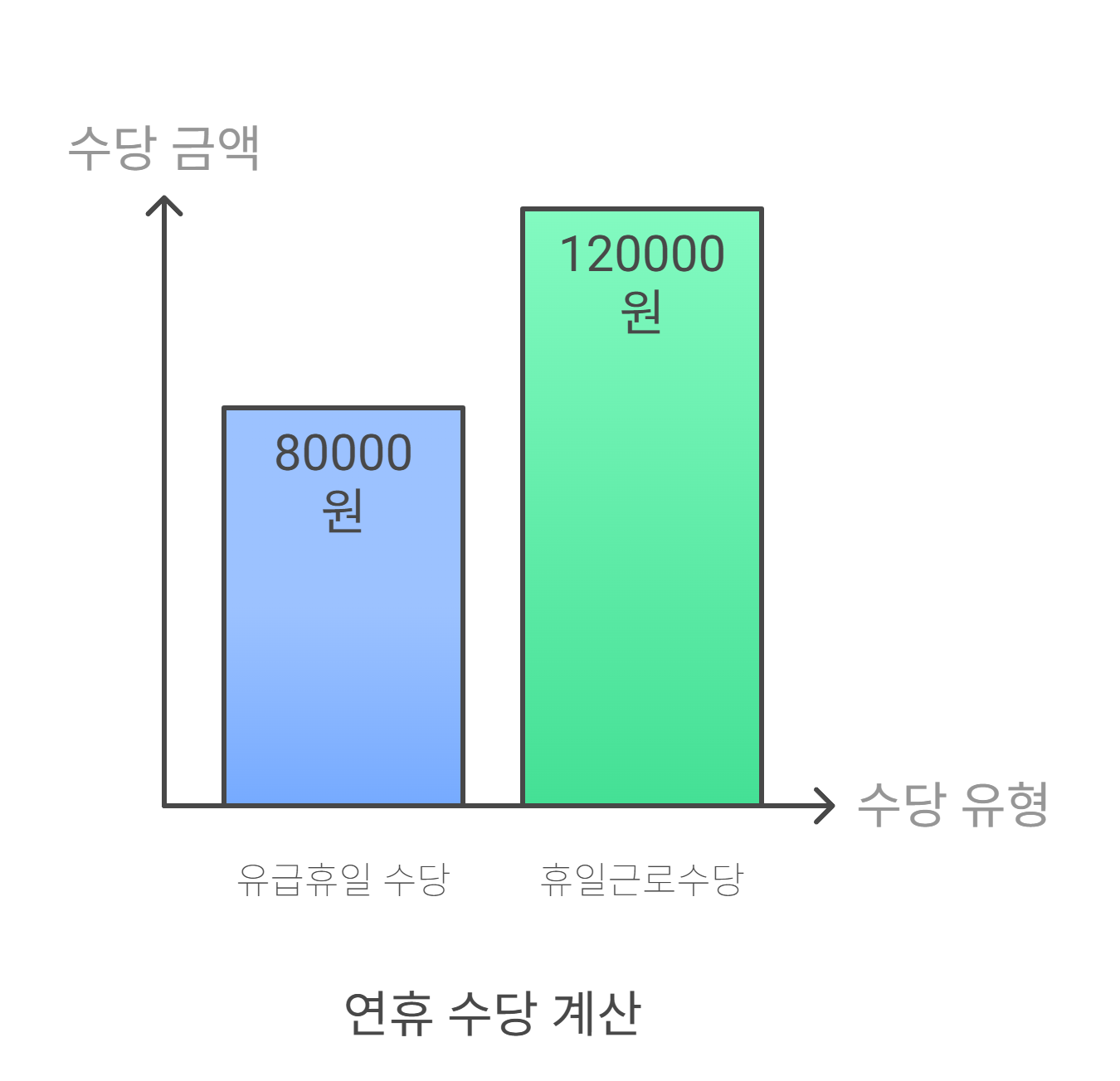 - → 유급휴일수당 80,000원 + 휴일근로수당 120,000원 = 총 200,000원