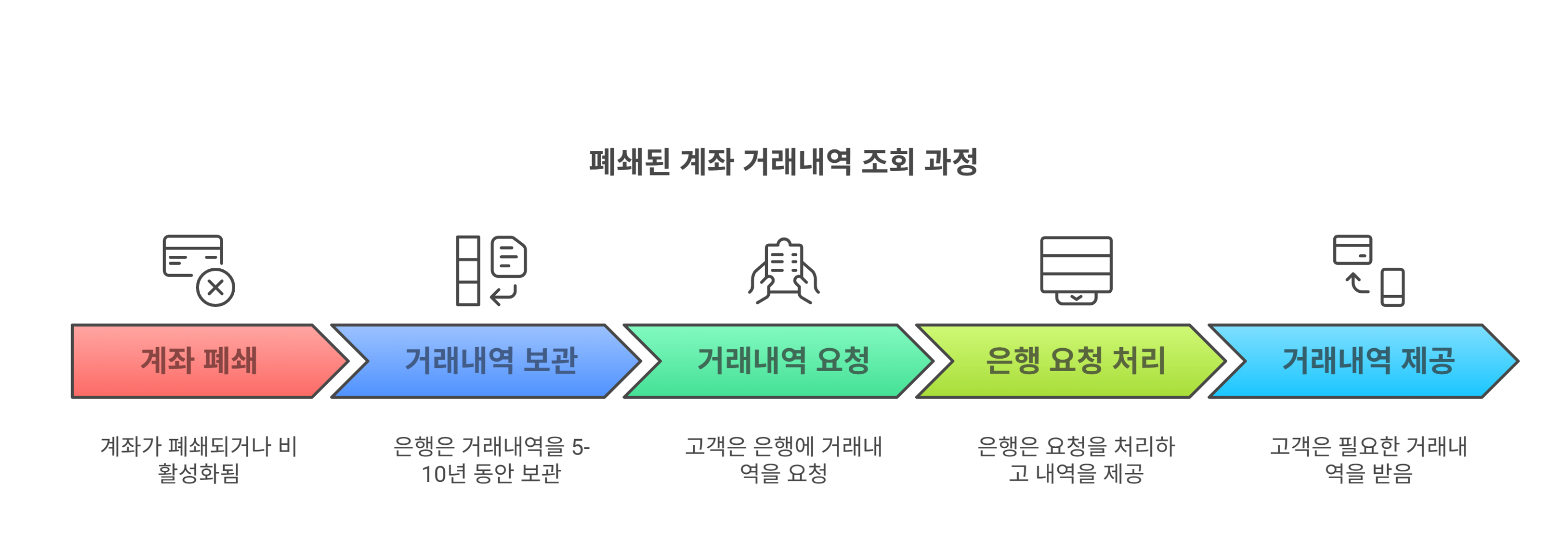 즉, 폐쇄된 계좌라도 보관 기간 내라면 요청을 통해 거래내역을 확인할 수 있습니다.