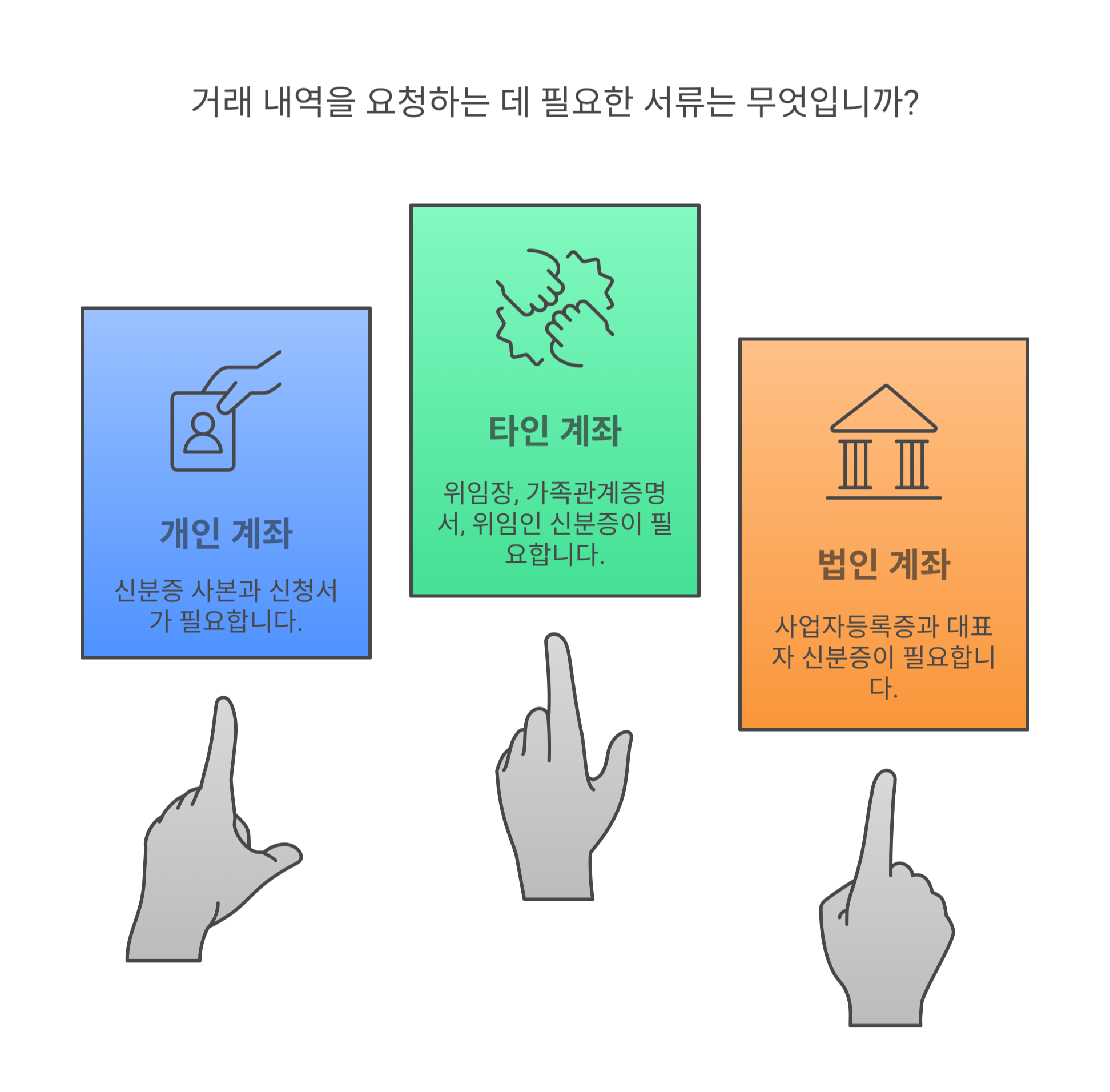 다음은 거래내역 요청 시 어떤 서류가 필요한지 안내드릴게요! 📝