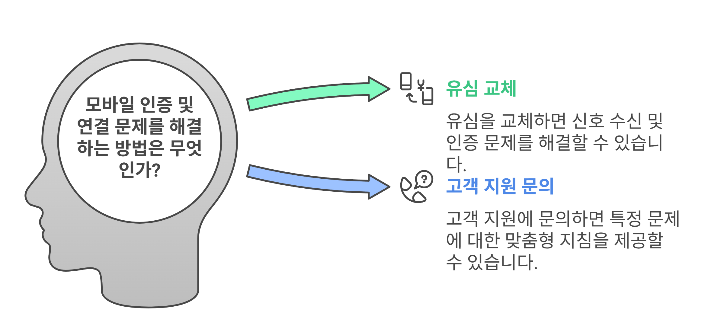 | 모바일 인증 실패 | 유심이 기기와 정상 통신하지 못해 인증 문자 수신 오류 |