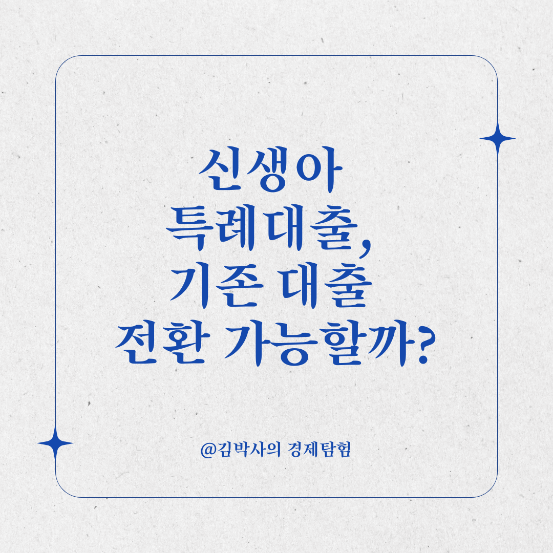 기본적으로 신생아 특례대출은 신규 대출을 위한 상품이므로, 기존 대출을 직접 전환하는 것은 어렵습니다. ✅