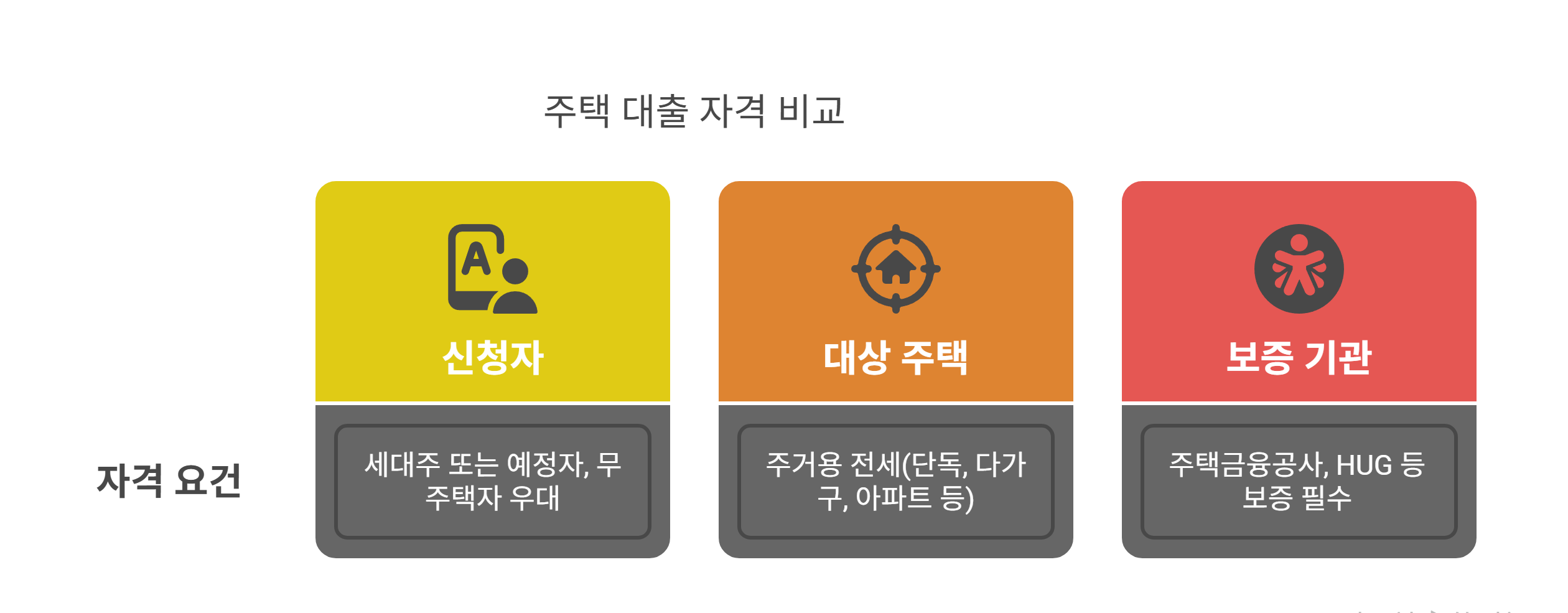 | 보증기관 | 주택금융공사, HUG 등 보증 필수 |