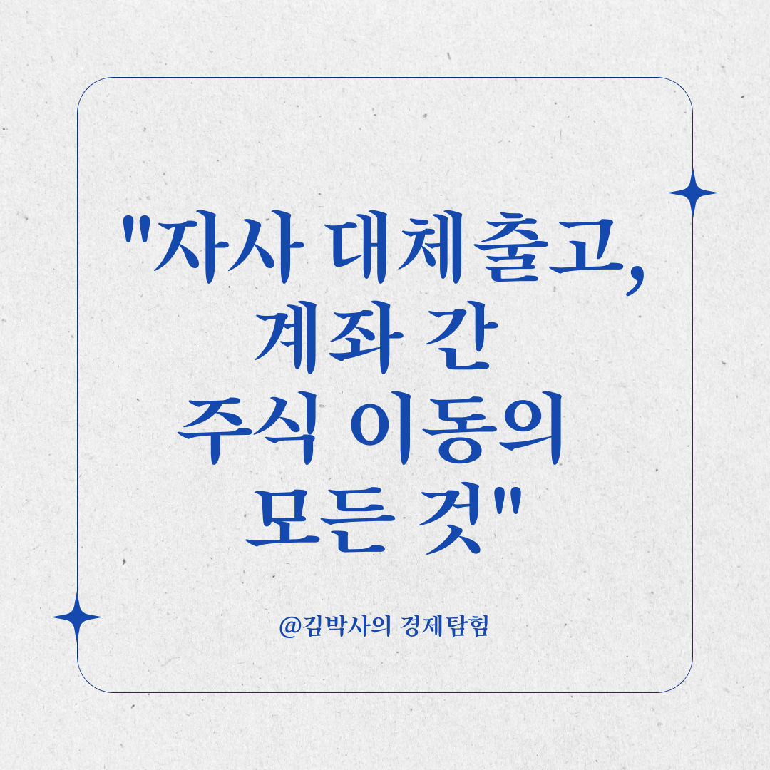 - '자사'는 같은 증권사를 의미하며, '대체출고'는 주식을 한 계좌에서 다른 계좌로 옮기는 것을 뜻합니다.