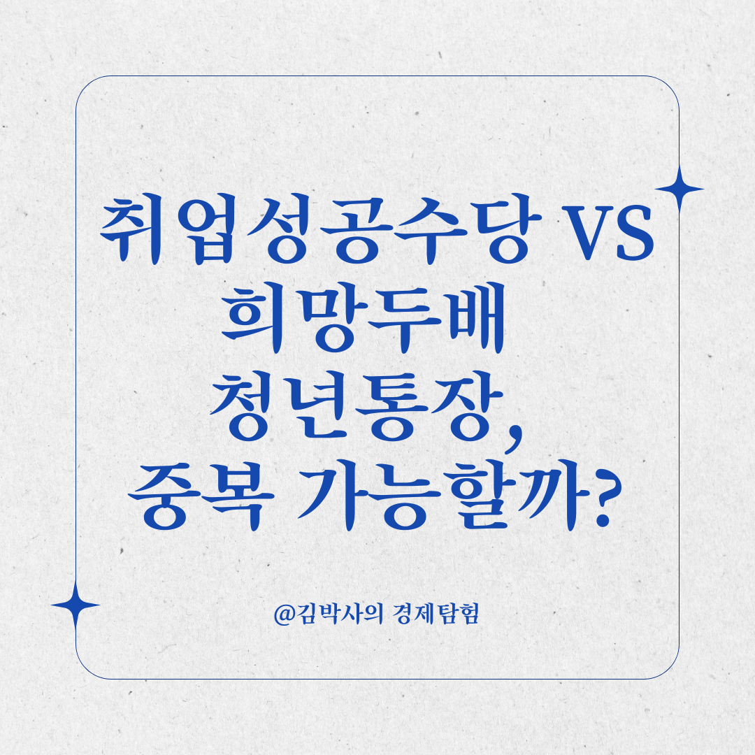 이번 글에서는 취업성공수당과 희망두배 청년통장의 중복 수령 가능 여부에 대해 자세히 알아보겠습니다.