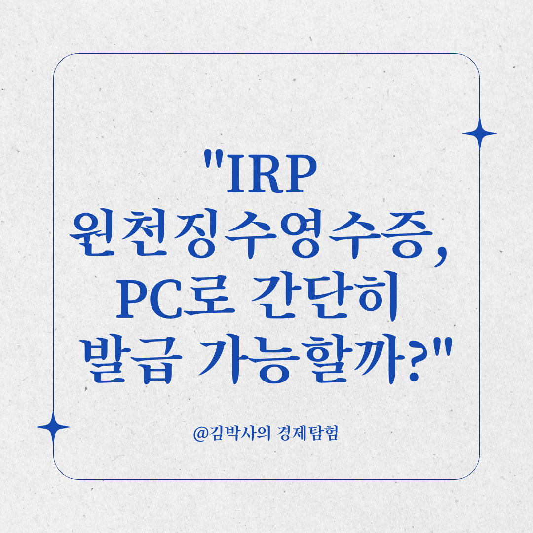 이번 글에서는 PC로 IRP 계좌 원천징수영수증을 발급하는 방법과 대체 가능한 절차를 자세히 안내드립니다.