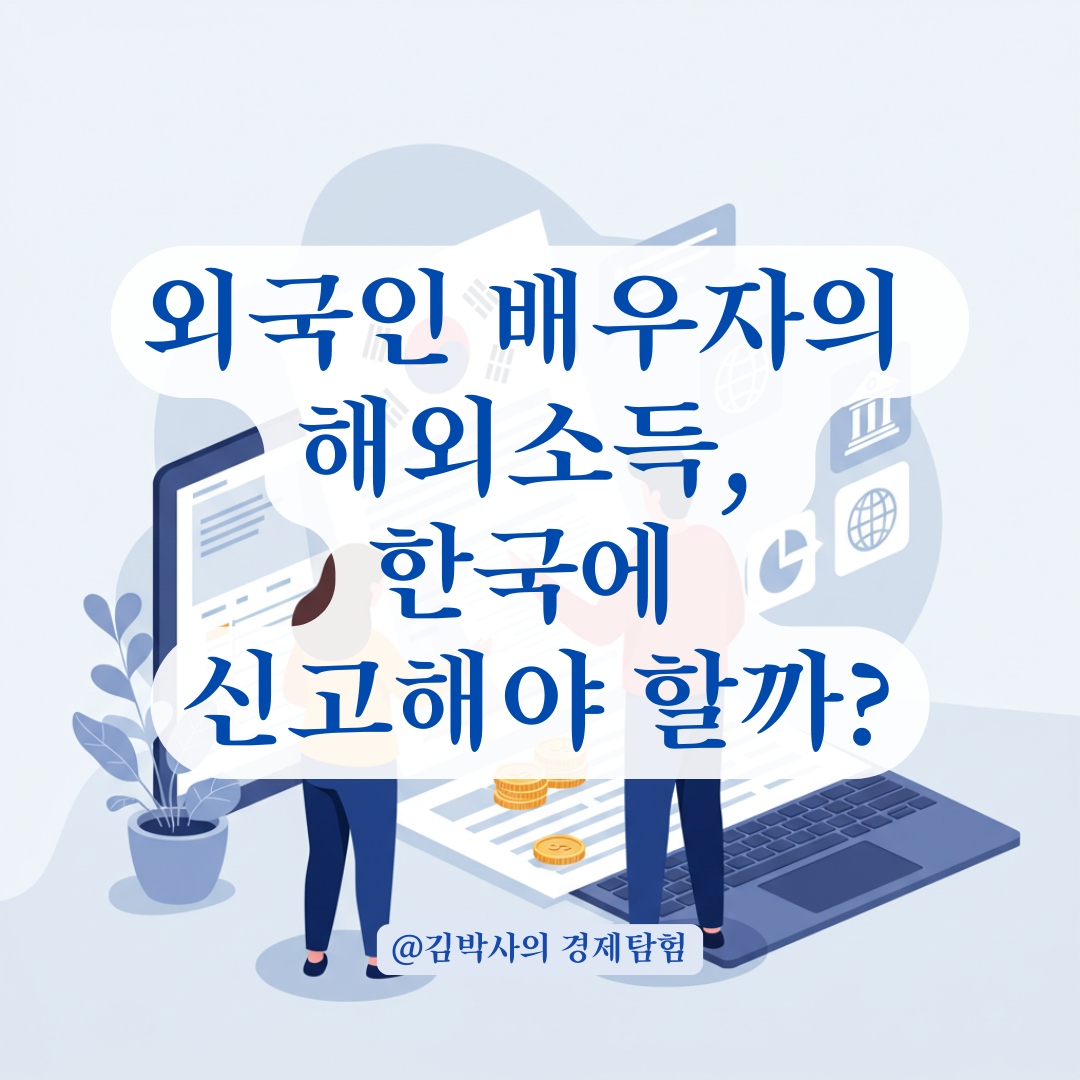이번 글에서는 외국인 배우자의 해외 소득이 한국 소득세 신고 대상인지, 신고 기준과 예외사항을 상세하게 안내드릴게요!