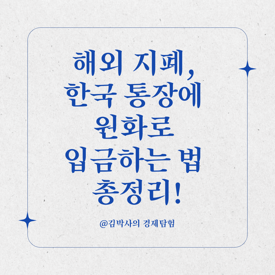 해외에서 생활하며 모은 돈을 한국 통장에 원화로 입금하려면 몇 가지를 알아야 합니다.