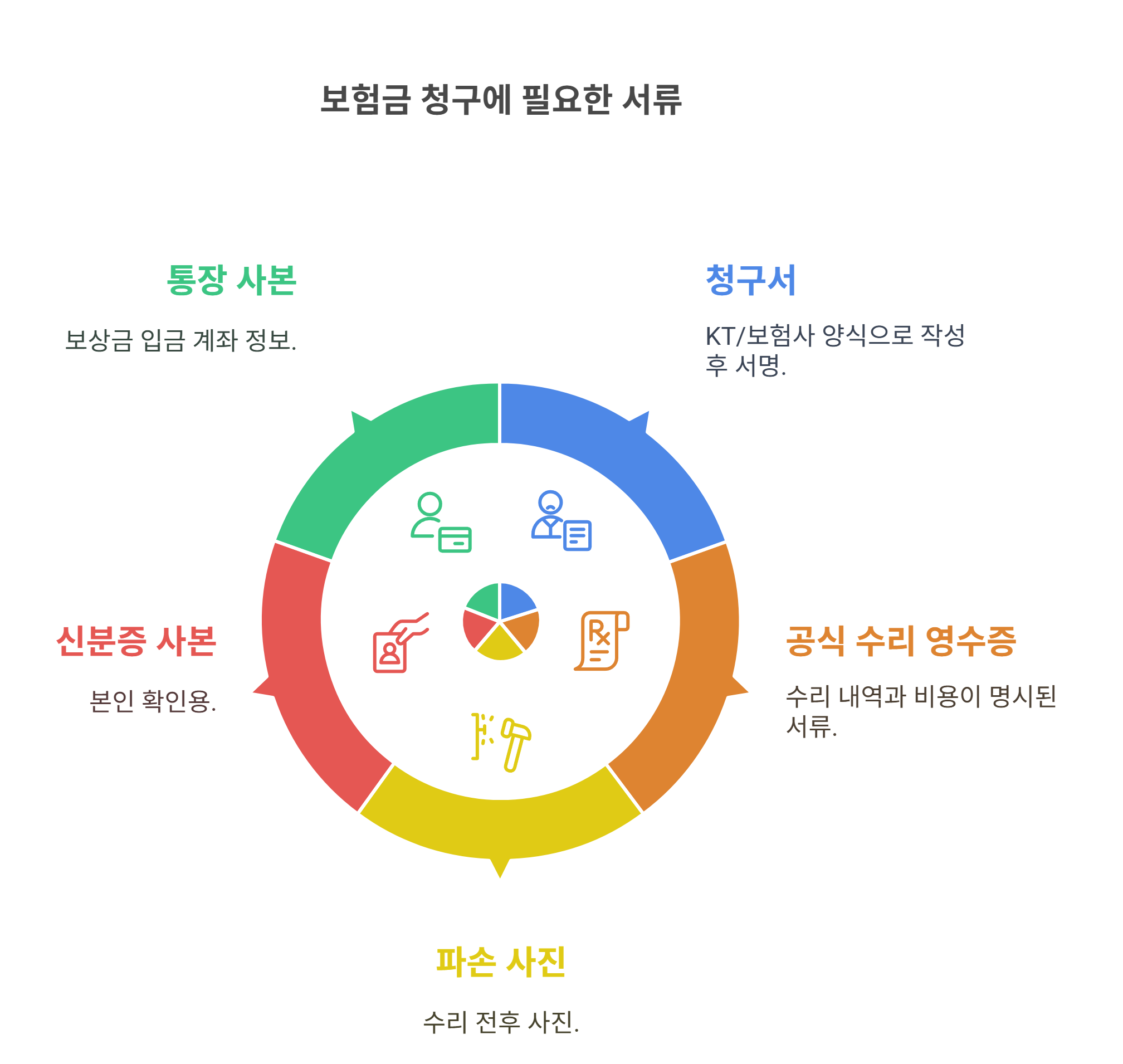 | 보험금 청구서 | KT/보험사 양식으로 작성 후 서명 |