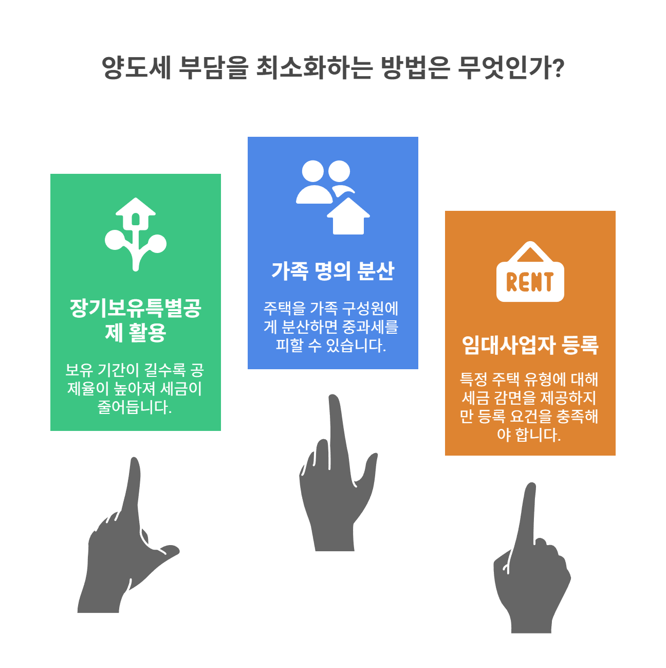 ✅ 장기보유공제, 명의 분산, 임대등록 등 절세 전략 다양