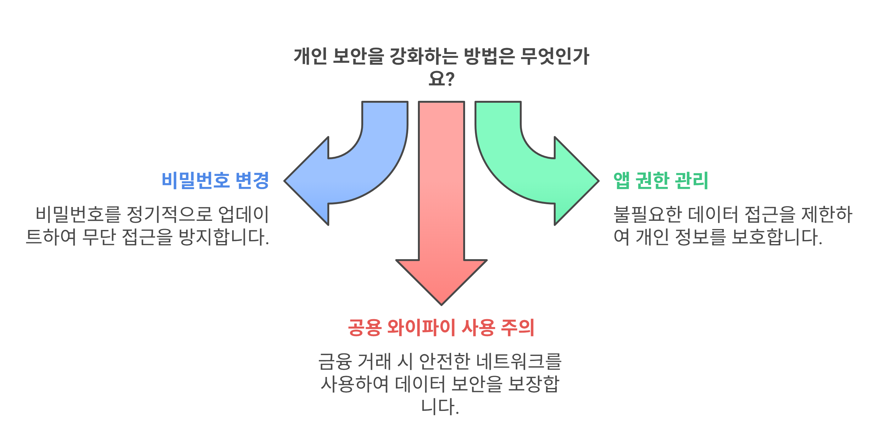 | 공용 와이파이 사용 주의 | 금융거래 시에는 LTE/5G 또는 개인 VPN 사용 |