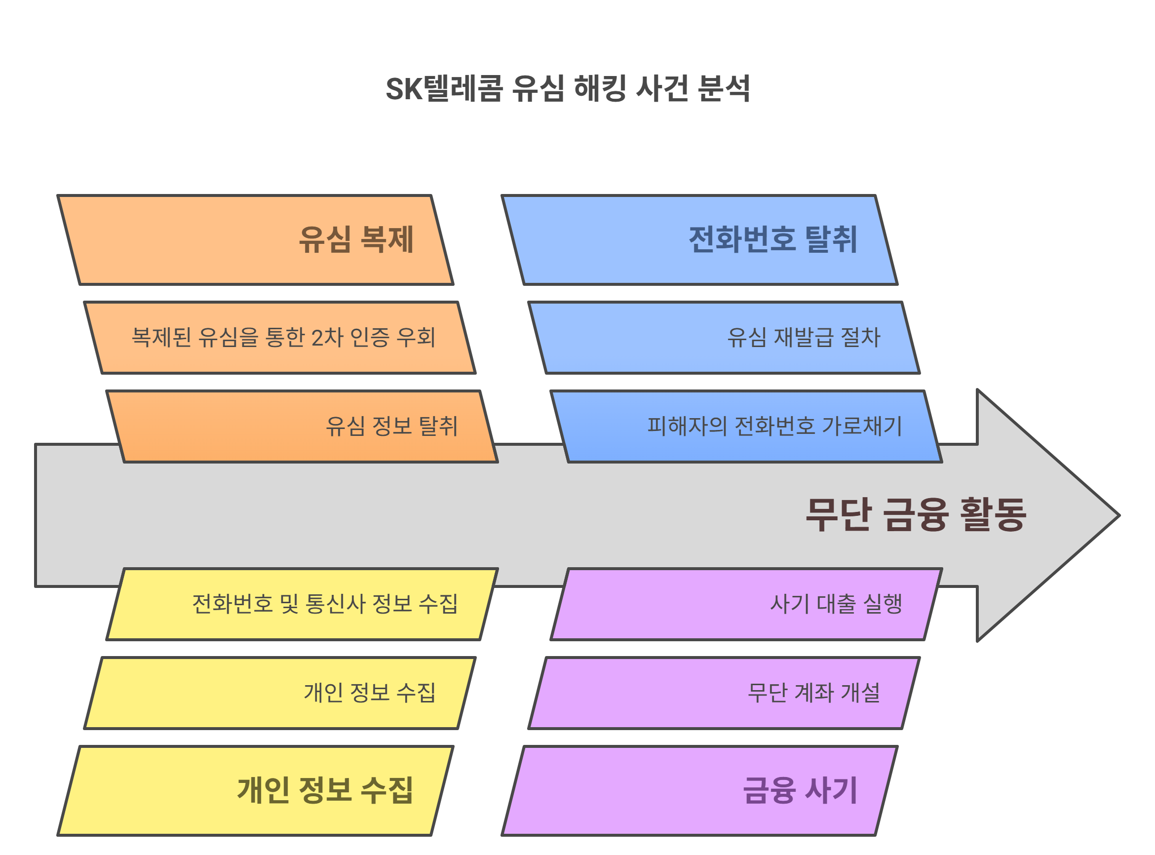 이번 SKT 유심 해킹 사건은 사용자 모르게 유심 정보를 탈취해 복제한 후, 2차 인증을 우회해 금융기관 접속이나 대출 실행 등에 악용된 사례입니다. ⚡