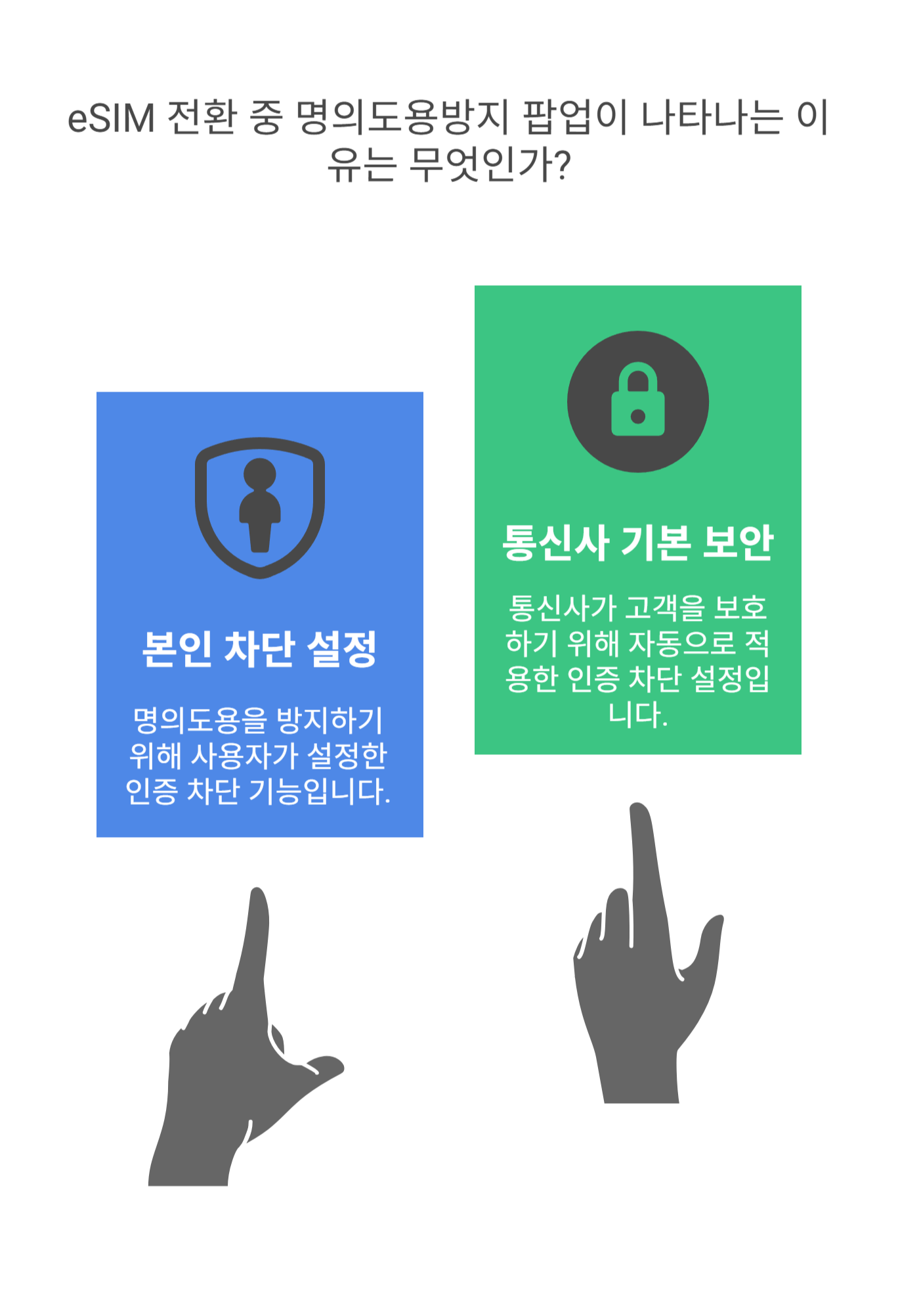 eSIM 전환 중 '명의도용방지 팝업'이 나타나는 경우, 대부분 다음과 같은 이유로 발생해요.